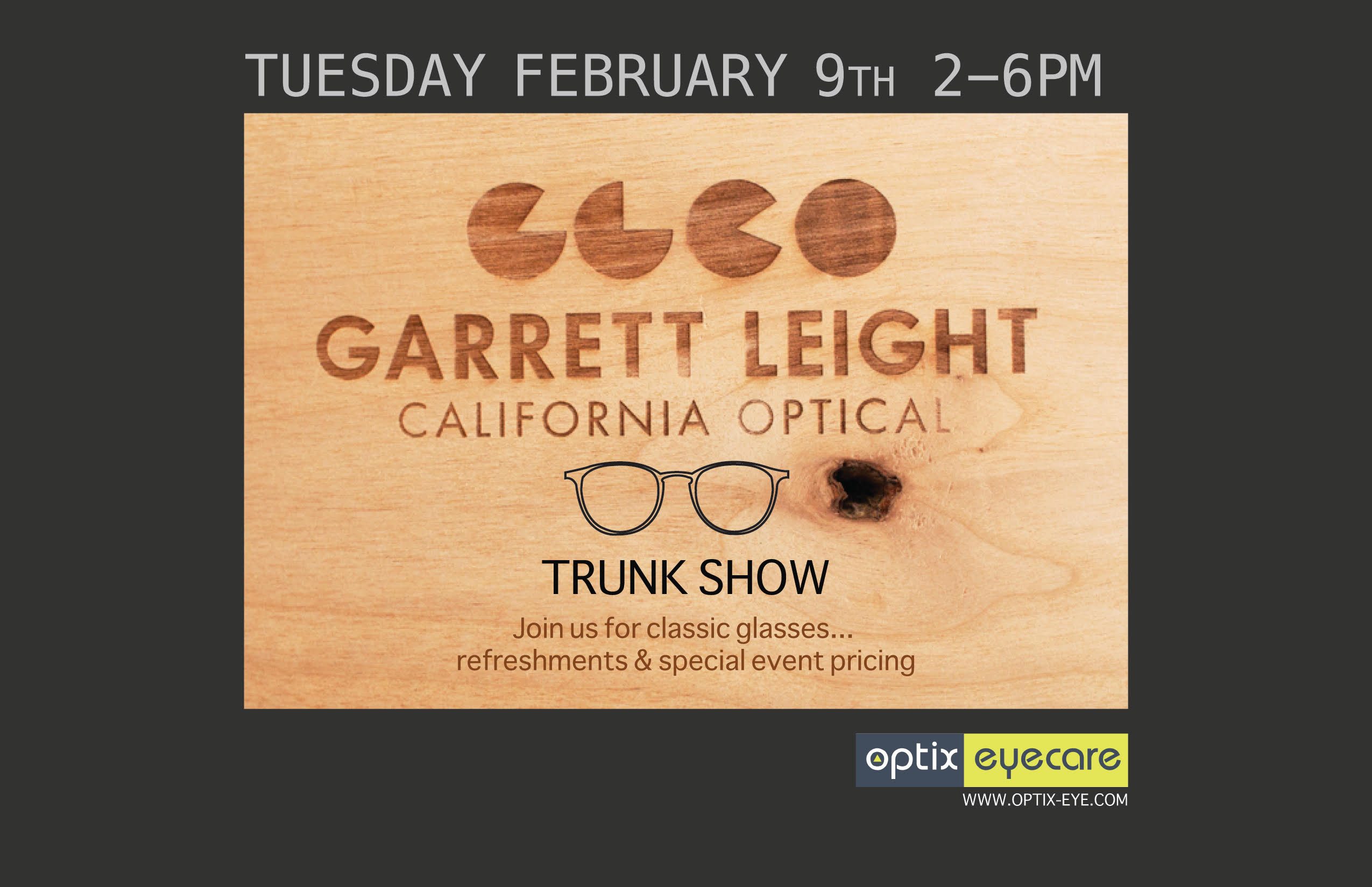 Optix 49 N Buncombe School Rd, WeavervilleJoin us for an exclusive trunk show with Garret Leight California Optical Tuesday, February 9th 2 - 6 pm Enjoy refreshments while exploring this classic collection in our optical lounge.